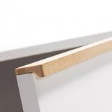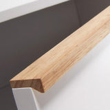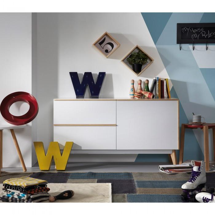Combinando un armario y dos cajoneras este aparador se convierte en una solución de almacenaje práctica y funcional. Enteramente fabricado en madera, fibra de madera para la estructura, y madera de roble macizo para los pies, su aspecto final es muy sofisticado.
