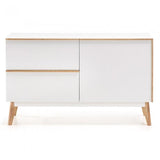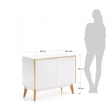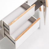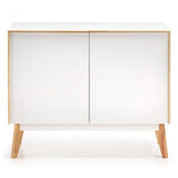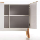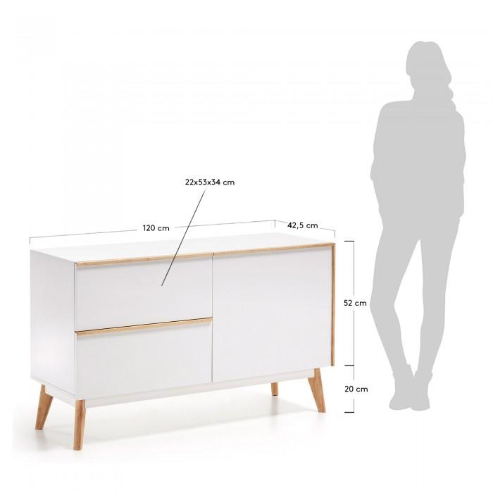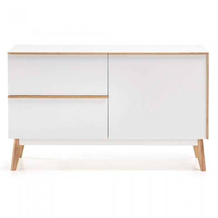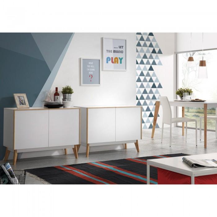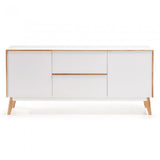 Aparador en DM lacado mate. Pies, tiradores y marco en madera de roble macizo.