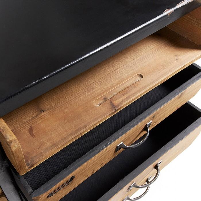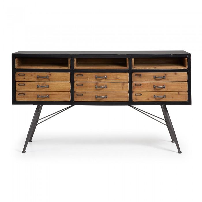 Un aparador de marcado estilo industrial realizado en madera de abeto con acabado envejecido y pies de metal. Si te gusta el estilo industrial, has encontrado el mueble perfecto.