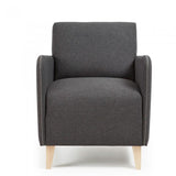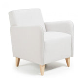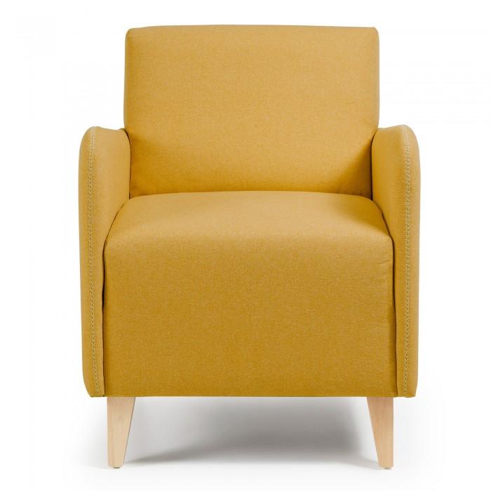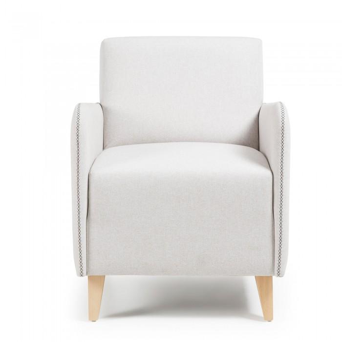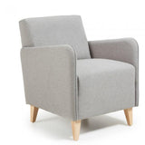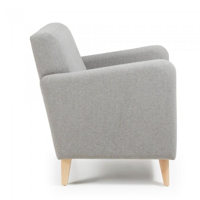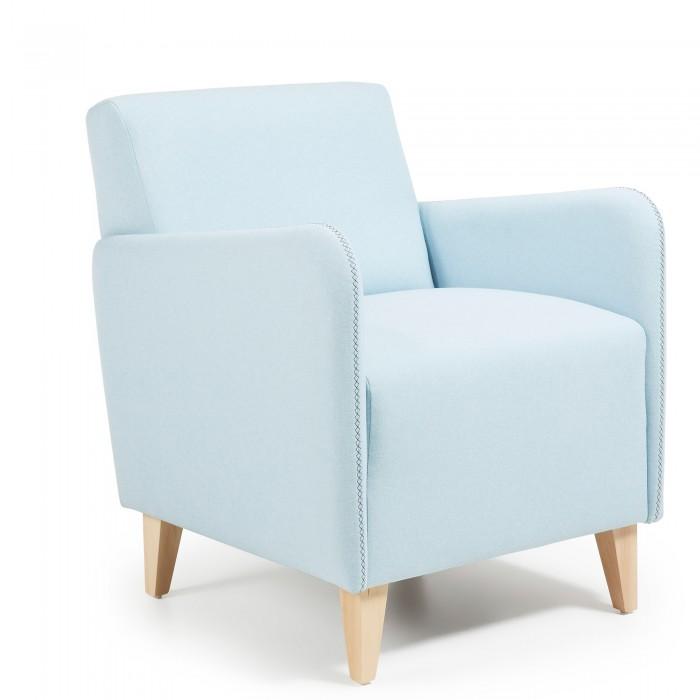 Sillón tapizado con tela Varese tratamiento Teflon antimanchas. Brazos con detalle pespunte baseball. Pies en madera de haya natural.
