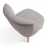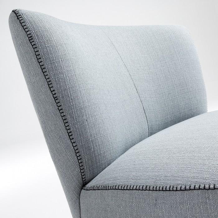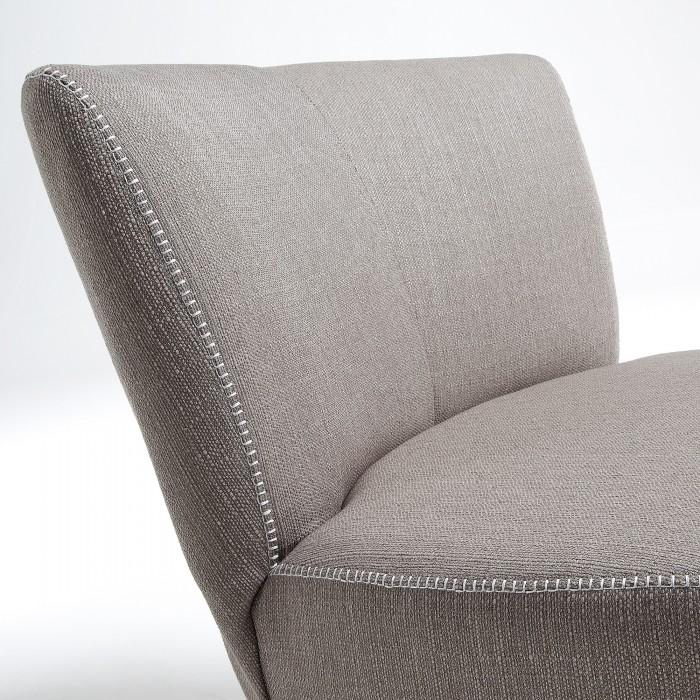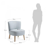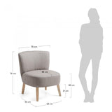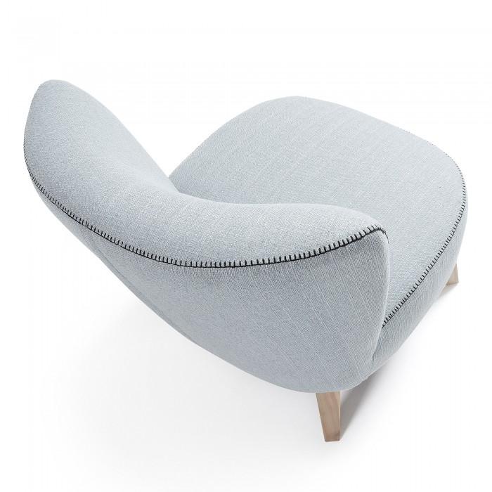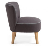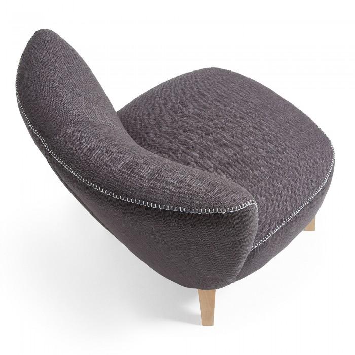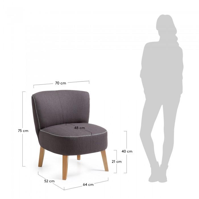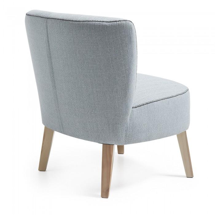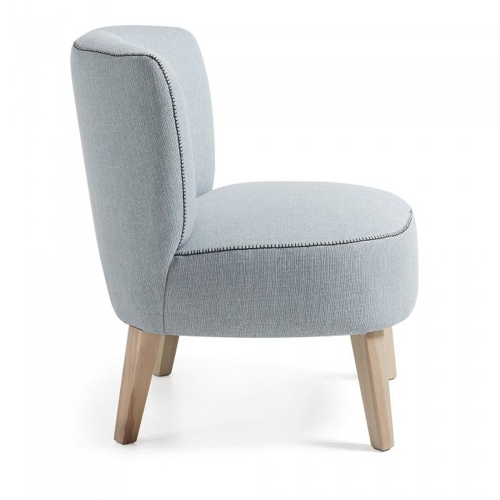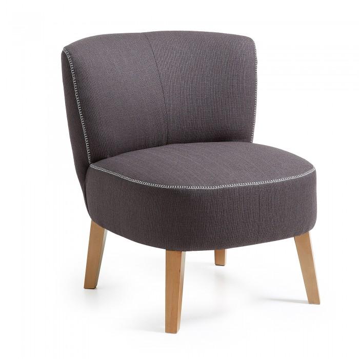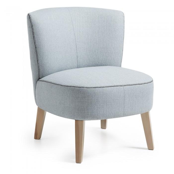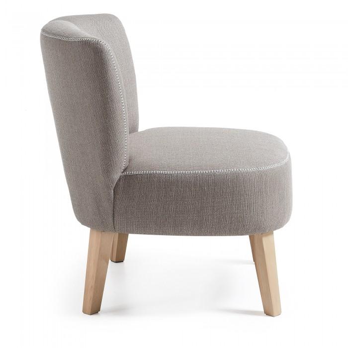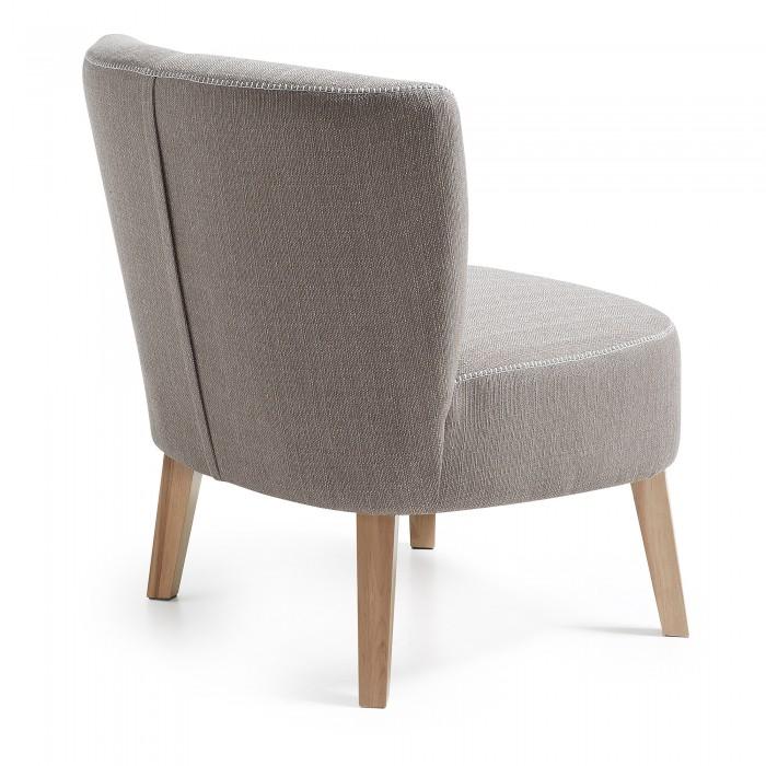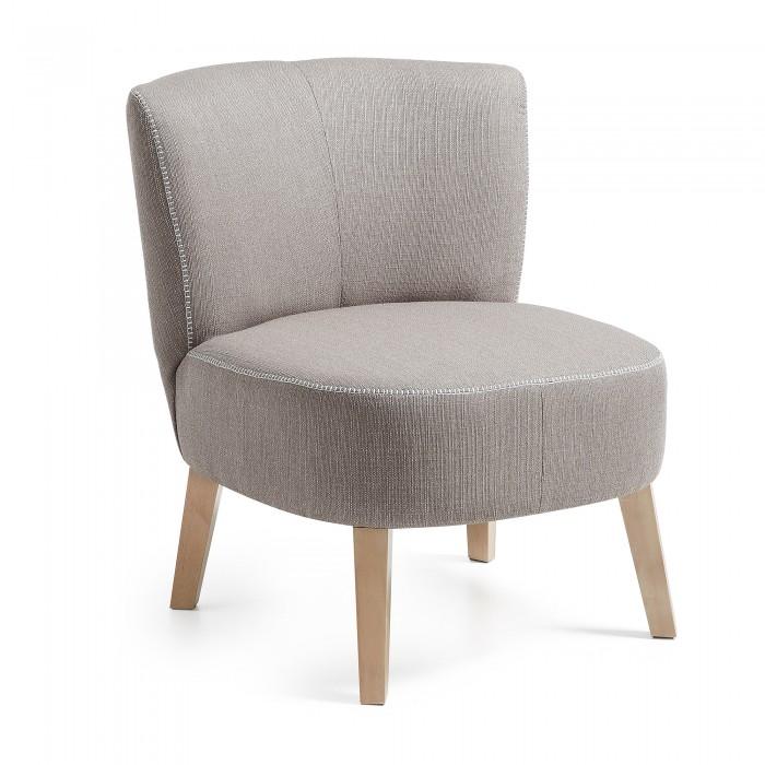 Butaca tapizada con tela. Pies de madera maciza natural.