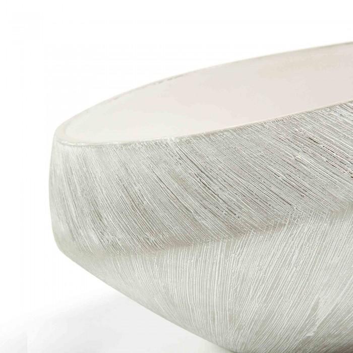 Centro de mesa de cerámica en acabado cepillado mate y blanco brillo.