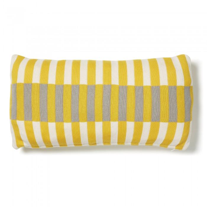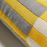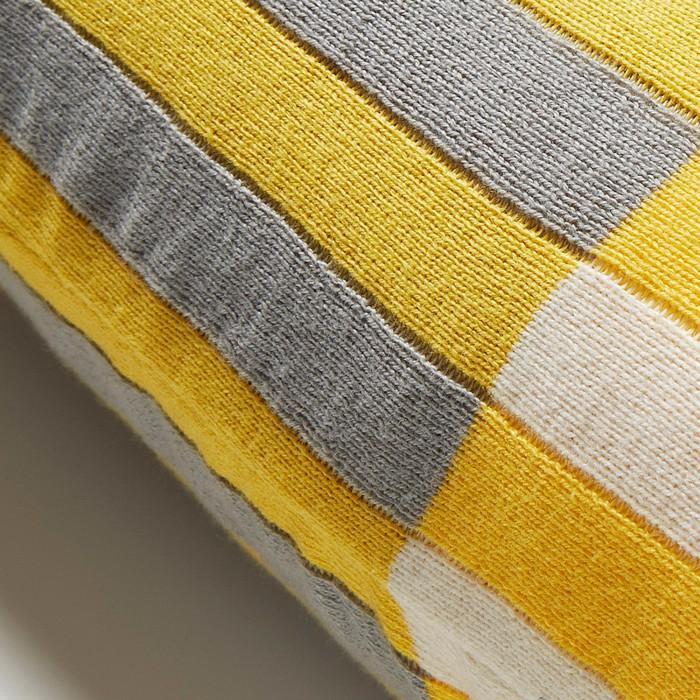 Esta funda de cojín plantea una divertida combinación de finas franjas verticales en un tono claro sobre una franja horizontal más oscura, todo en una base amarilla. ¡Dale color a tus días!