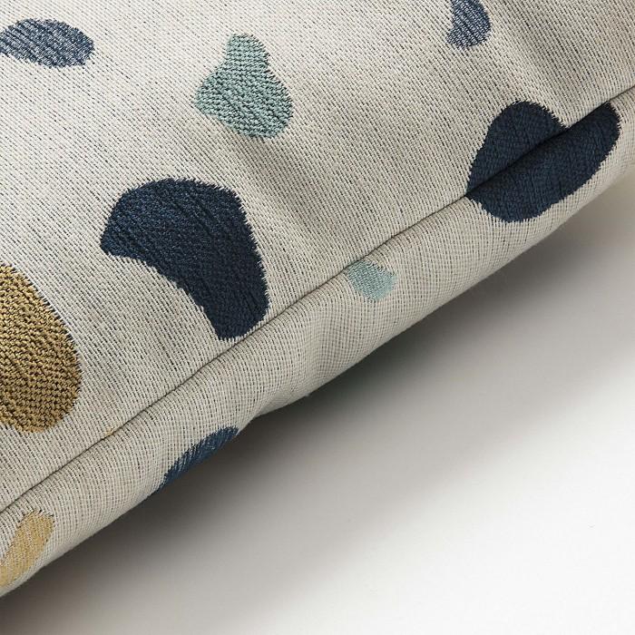 Cojín en tela terrazzo y cierre con cremallera.