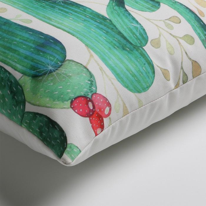 Alegría y frescura. Eso es lo que desprende este cojín de inspiración tropical, apto tanto para interiores como exteriores bajo techo. Además, es desenfundable para que luzca siempre como el primer día.