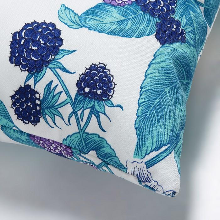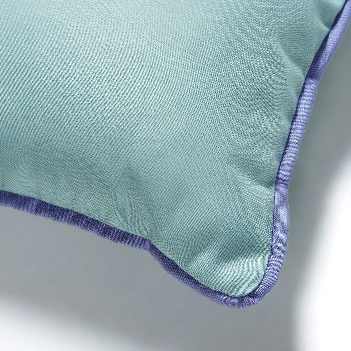 Cojín en tejido 100% acrílico. Desenfundable. Relleno de fibra incluido. Para uso interior y exterior bajo techo.