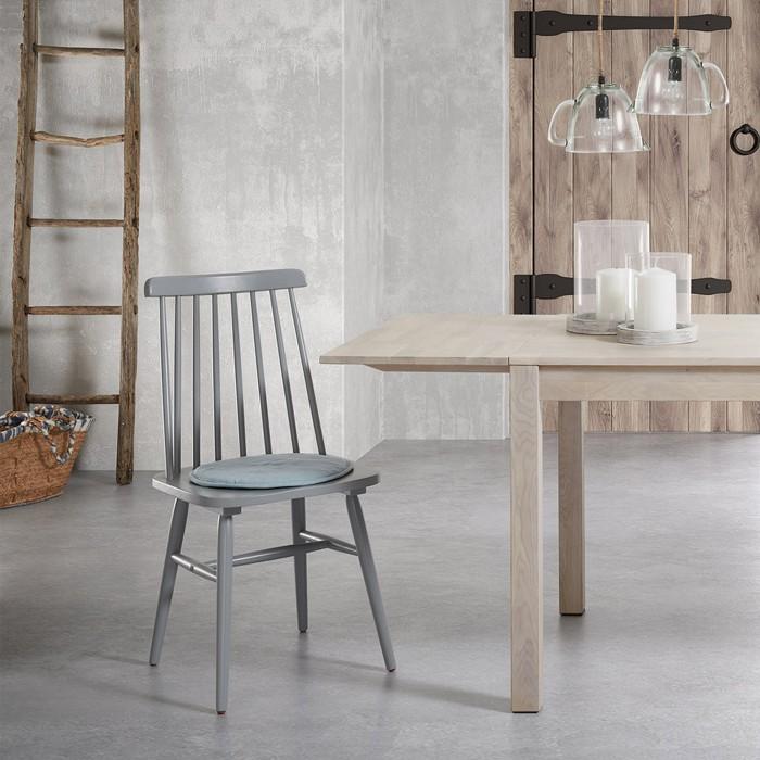 Cojín de diseño redondo acabado en tela Verona en tonos suaves para que puedas disfrutar al máximo del estilo nórdico y de la colección Silke. Un complemento imprescindible para que tus cenas con amigos sean geniales.