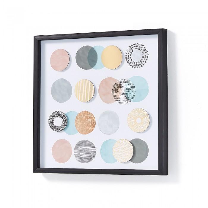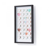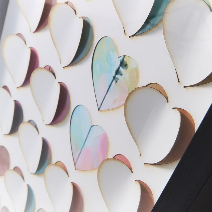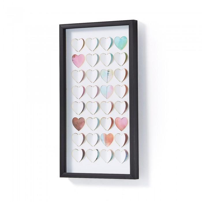 Cuadro con corazones en relieve y marco de fibra de madera y metacrilato.