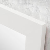 Espejo rectangular minimalista con marco de moldura en madera laminada. Acabado en blanco satinado.