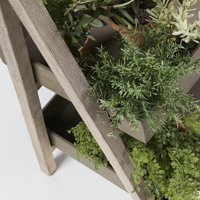 Perfecta para tener agrupadas todas tus plantas en la terraza o dentro de casa, esta estantería elaborada en madera de acacia y bandejas de cemento es una pieza diferente que te ofrece el soporte perfecto para personalizar tu casa a tu gusto.