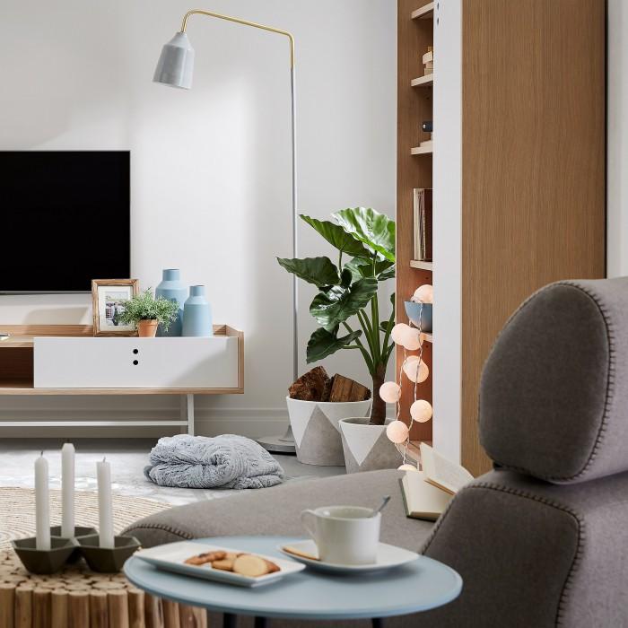 El binomio blanco y madera se ha convertido en uno de los más deseados en el mundo de la decoración. Si a eso le sumamos un diseño en líneas puras y una elegancia innata el resultado no es otro que esta pieza de diseño.