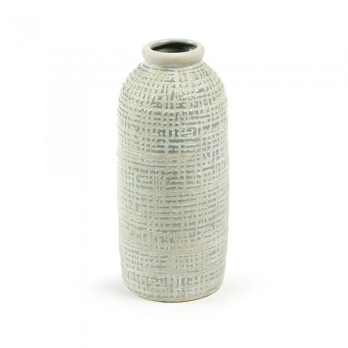 Jarrón de cerámica en acabado combinado mate y brillo.