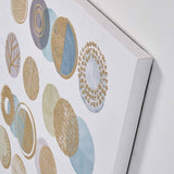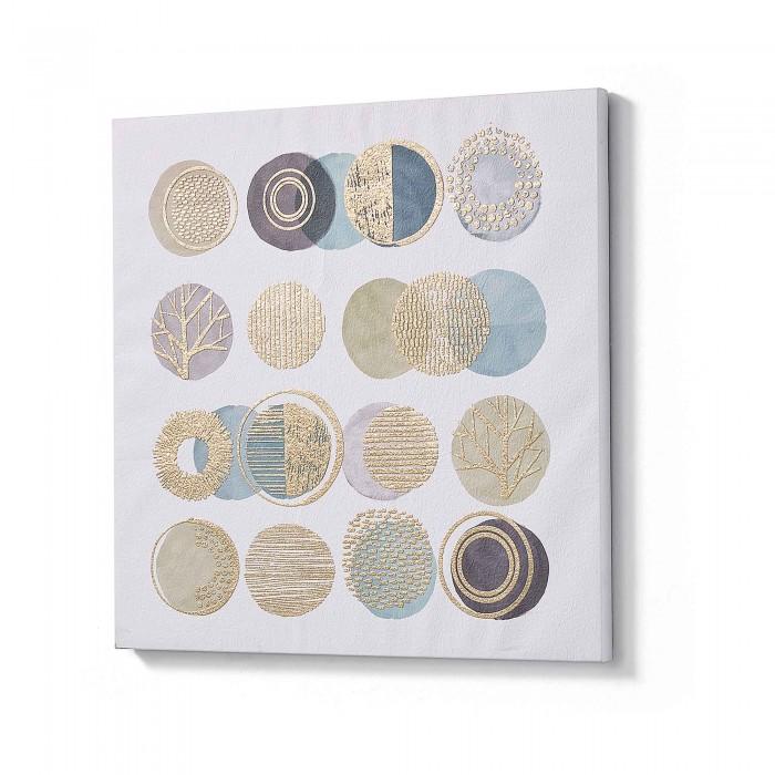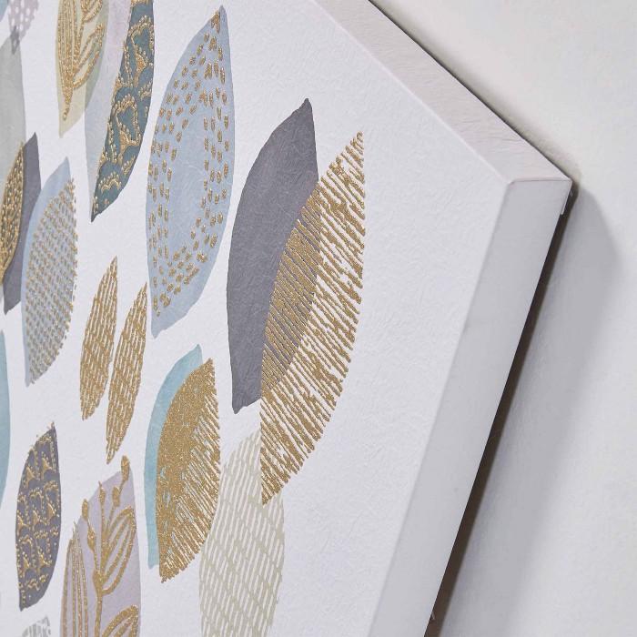 Cuadro con diseño geométrico impreso sobre pergamino de papel.
