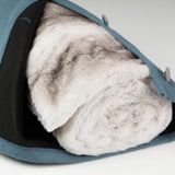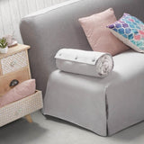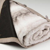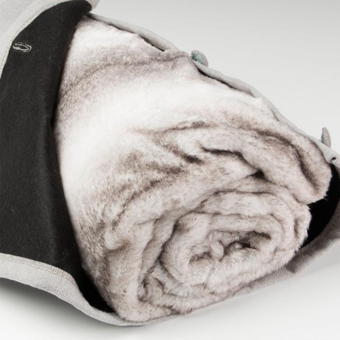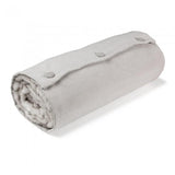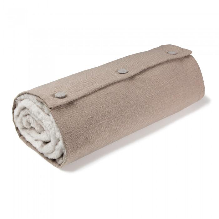Manta enrollada con funda de tela Bulova. Puede ser utilizada como cojín. Medidas manta 120x170 cm.