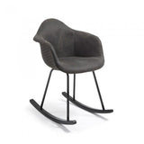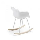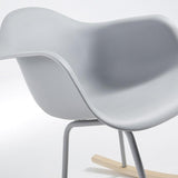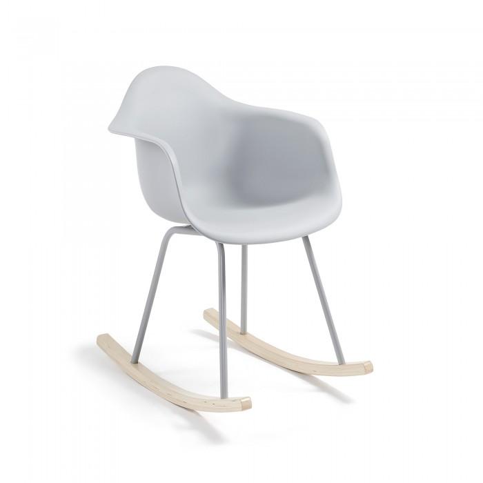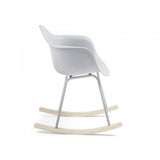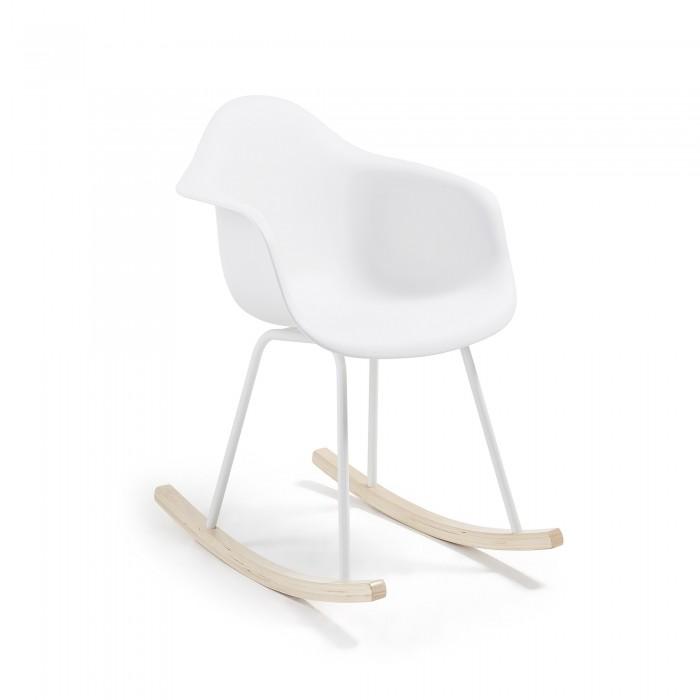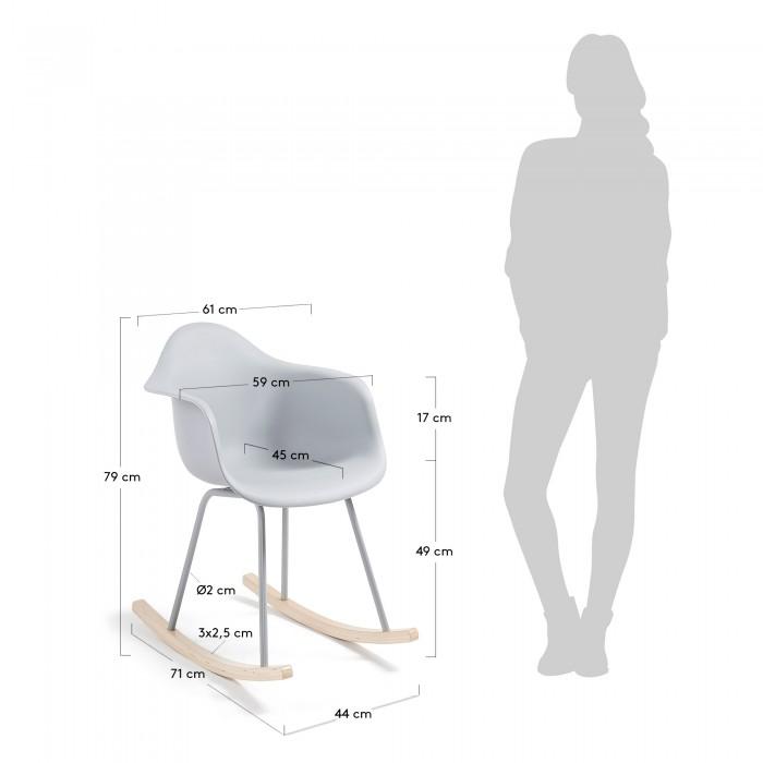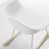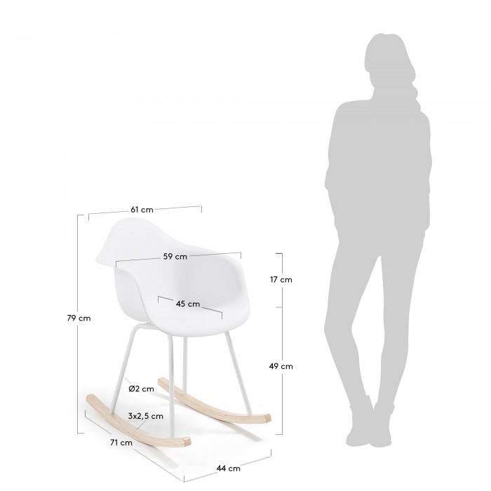 Mecedora con asiento en polipropileno. Pies en metal pintado epoxy. Patín en madera natural maciza.