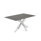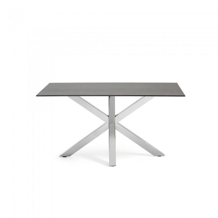 Acero y cerámico, dos materiales tan robustos como elegantes. En esta mesa se alían a la perfección: el primero para sus pies, el segundo para un gran sobre que le confiere mucha personalidad y elegancia.