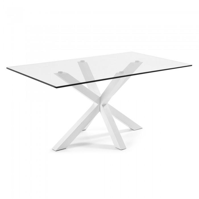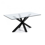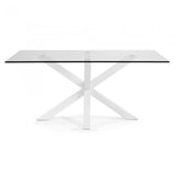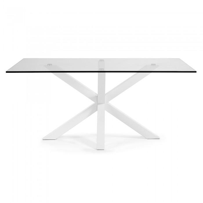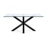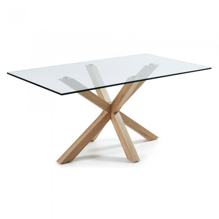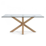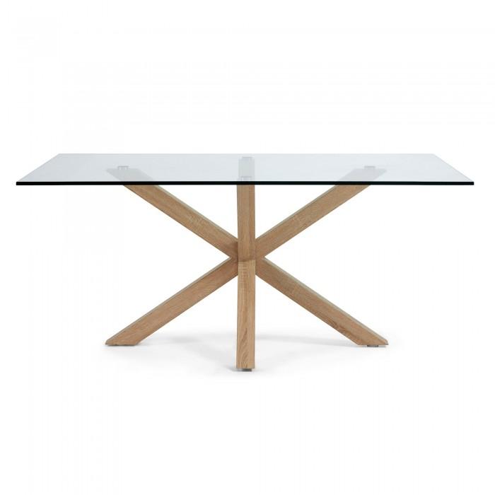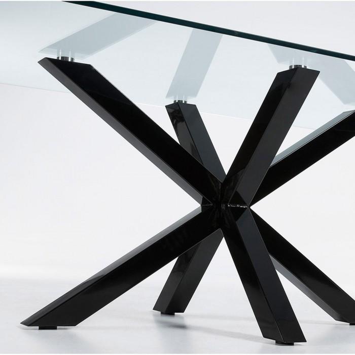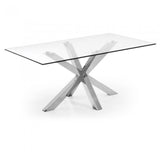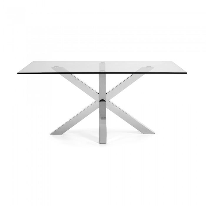 Acero chapado natural y cristal, dos materiales tan robustos como elegantes. En esta mesa se alían a la perfección: el primero para sus pies, el segundo para un gran sobre en cristal que le confiere mucha personalidad y elegancia.
