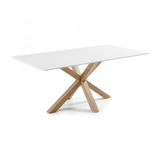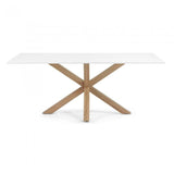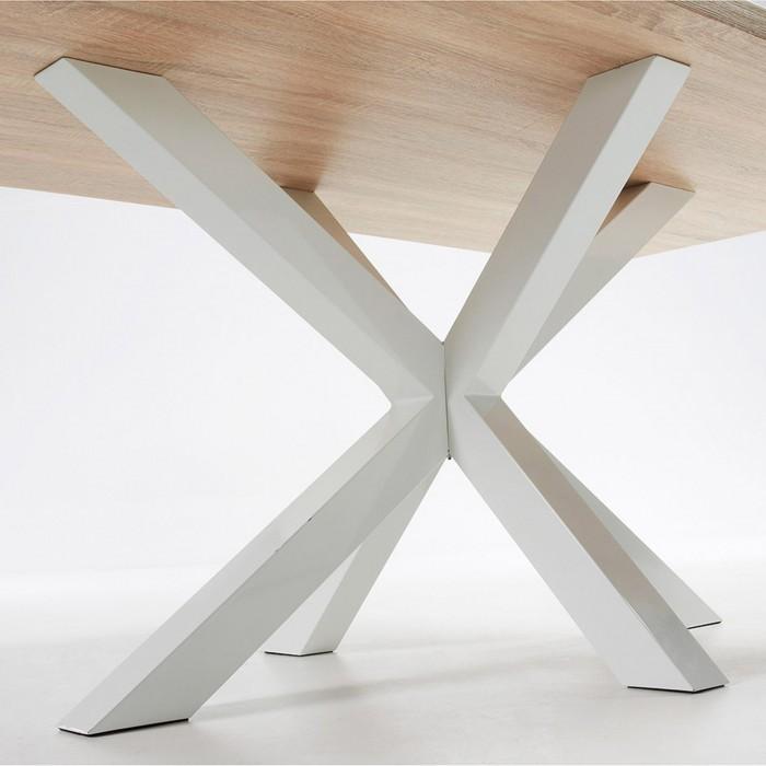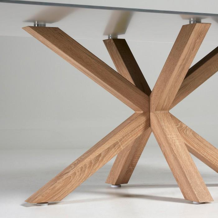 La madera un material tan robusto como elegante. En esta mesa se alían a la perfección: el primero para sus pies, el segundo para un gran sobre en madera que le confiere mucha personalidad y elegancia.