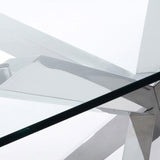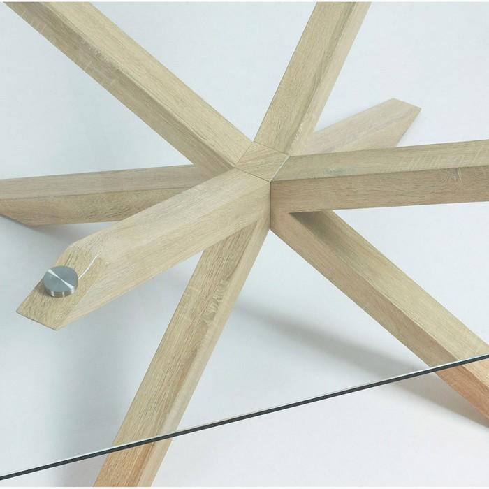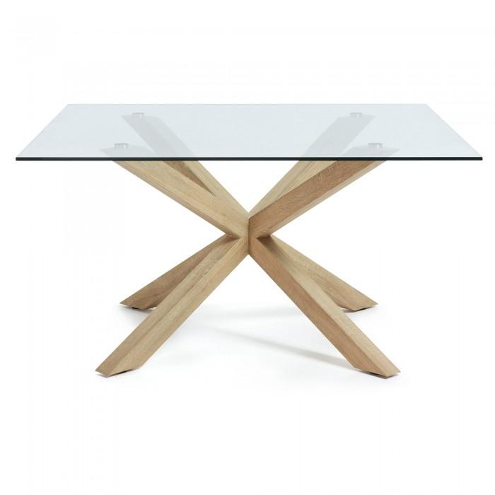 Acero chapado natural y cristal, dos materiales tan robustos como elegantes. En esta mesa se alían a la perfección: el primero para sus pies, el segundo para un gran sobre en cristal que le confiere mucha personalidad y elegancia.