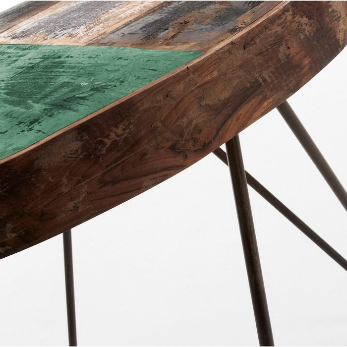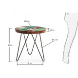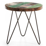 Mesa auxiliar con pies de hierro negro y sobre de madera reciclada en acabado envejecido.