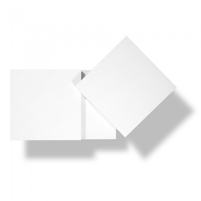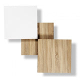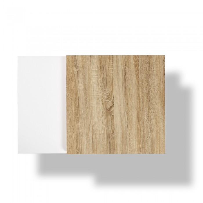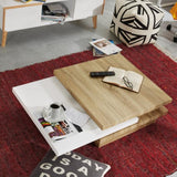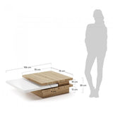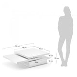Mesa de centro en DM lacado blanco mate. Compuesta por 3 bandejas movibles y extensibles hasta 142 cm.