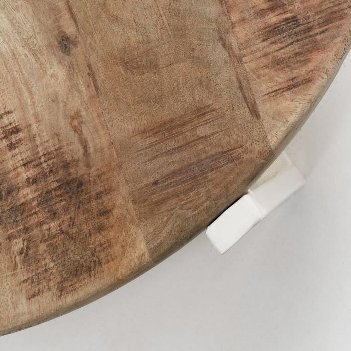 Mesa de centro con estructura de hierro blanco y sobre de madera de mango macizo en acabado naatural.