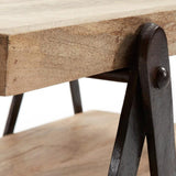Mesa de centro con pies de hierro negro y estantes de madera de mango en acabado natural.