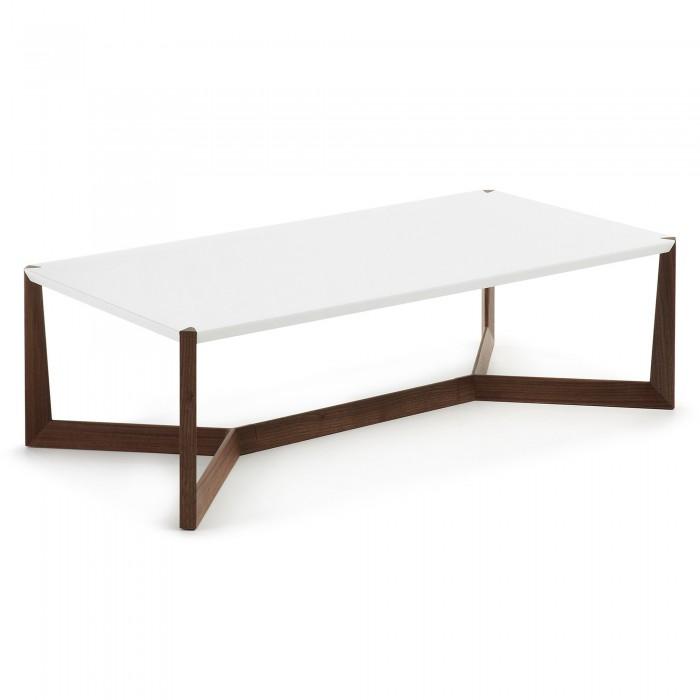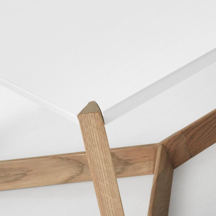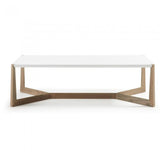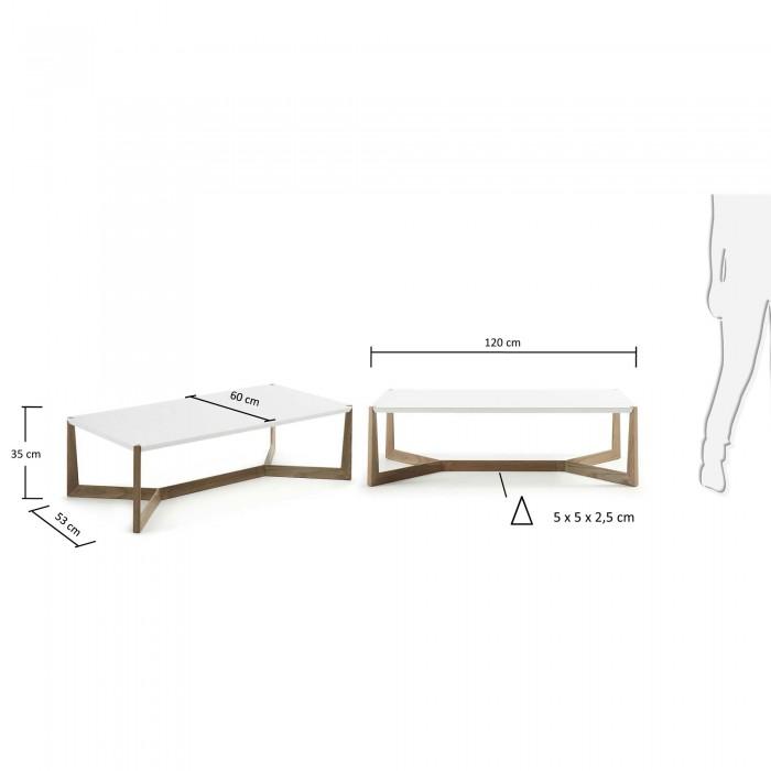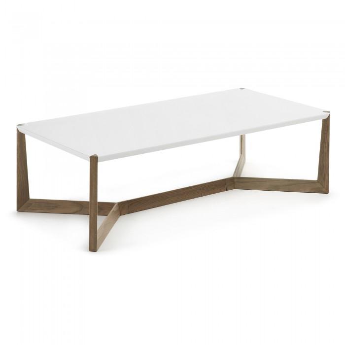 Mesa de centro con estructura de madera de fresno y sobre en tablero de fibra de madera lacada mate.