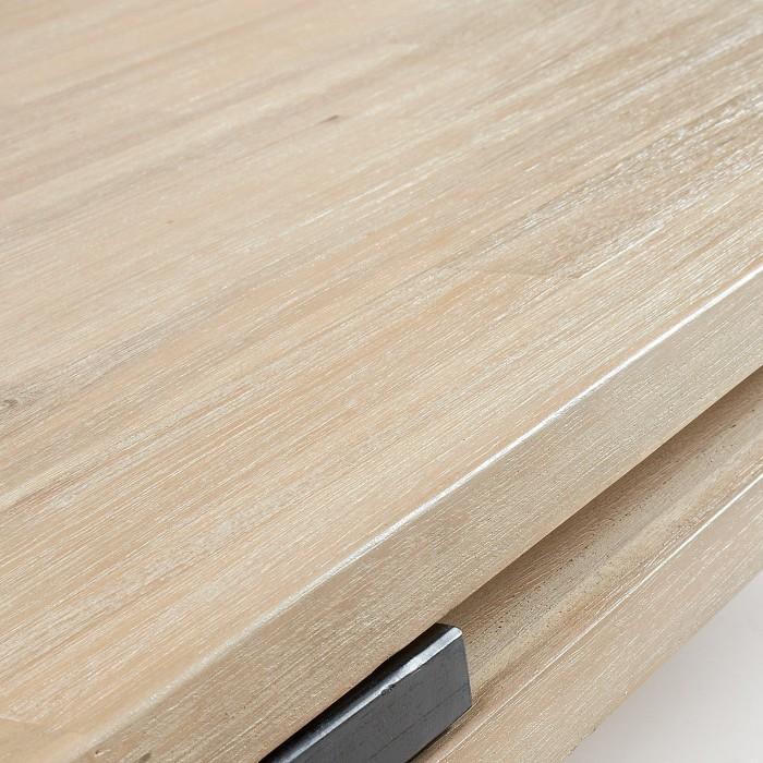 Mesa de centro con sobre de madera de acacia maciza en acabado natural blanqueado. Pies en metal pintado envejecido.