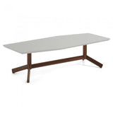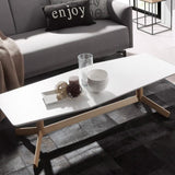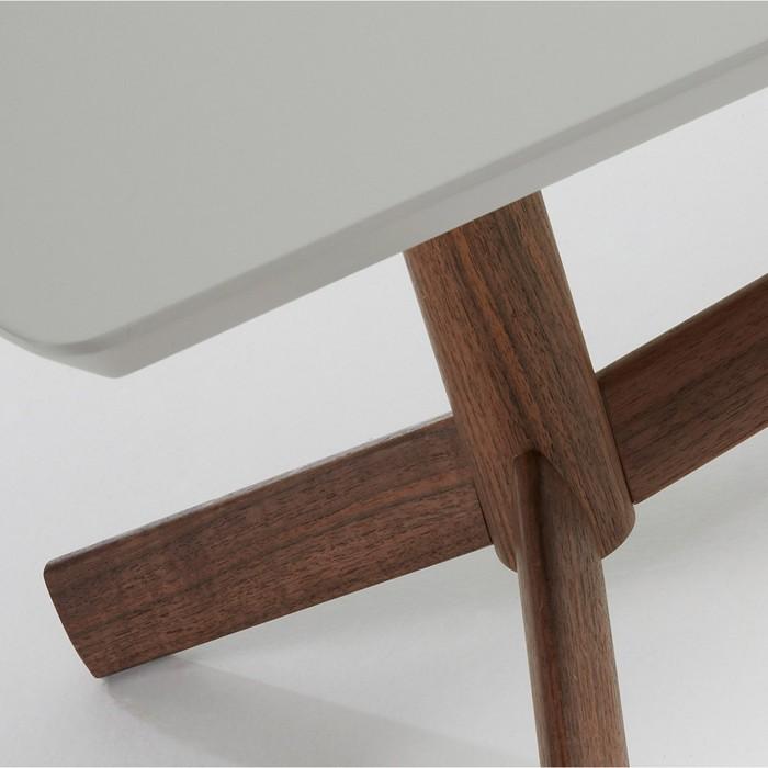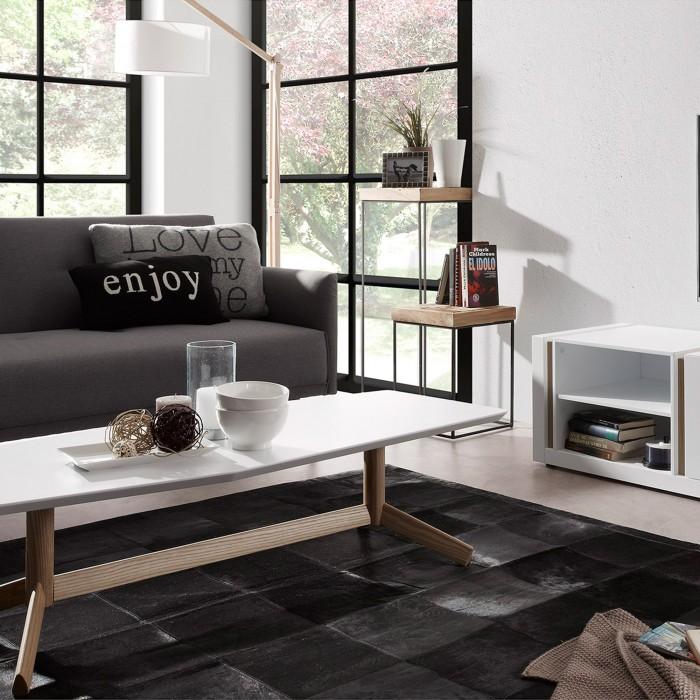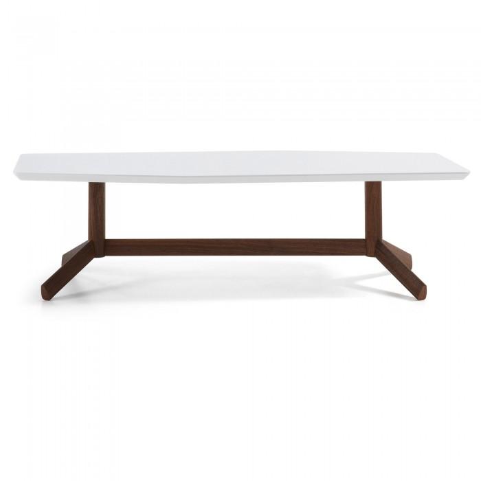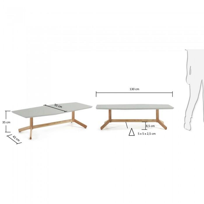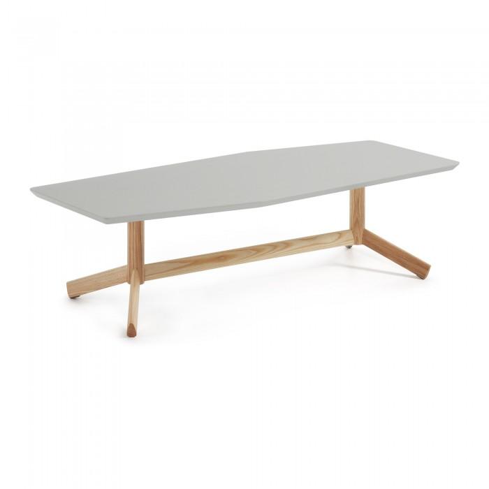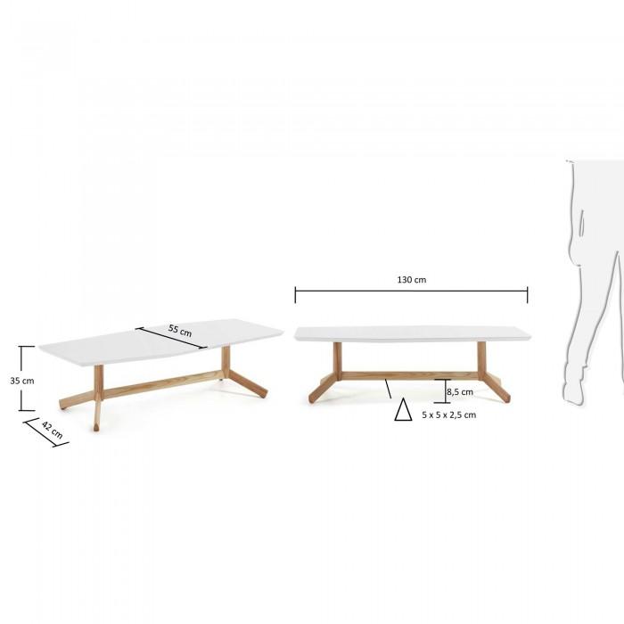 Mesa de centro con estructura de madera de fresno y sobre en tablero de fibra de madera lacada mate.