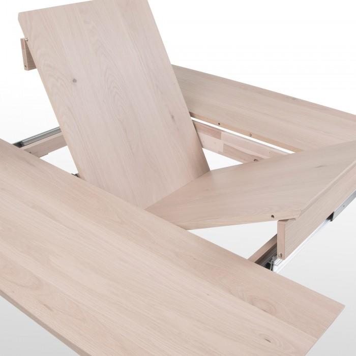 Mesa extensible en chapado de roble acabado natural. Longitud máxima 130 cm.