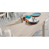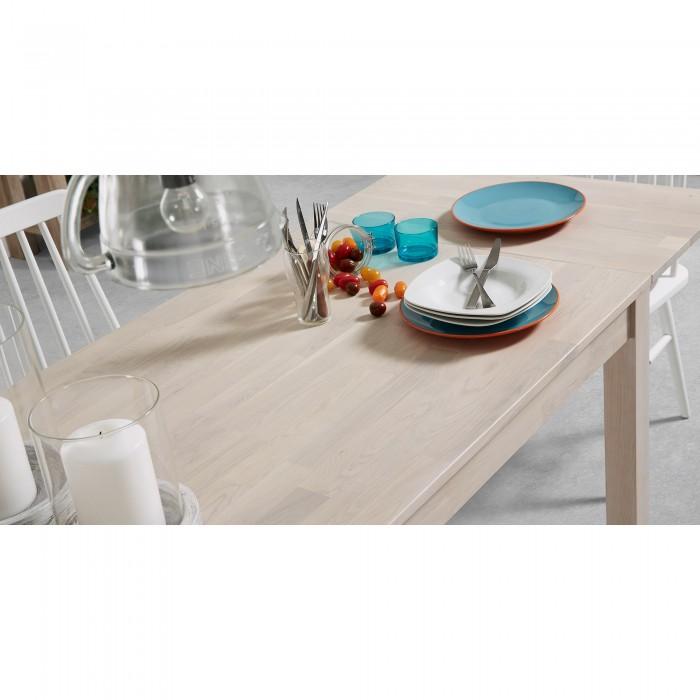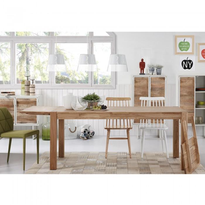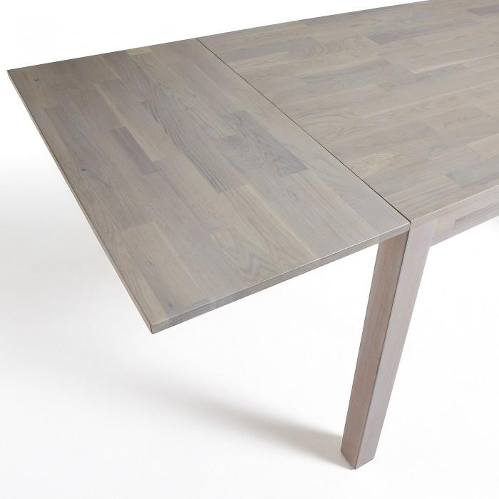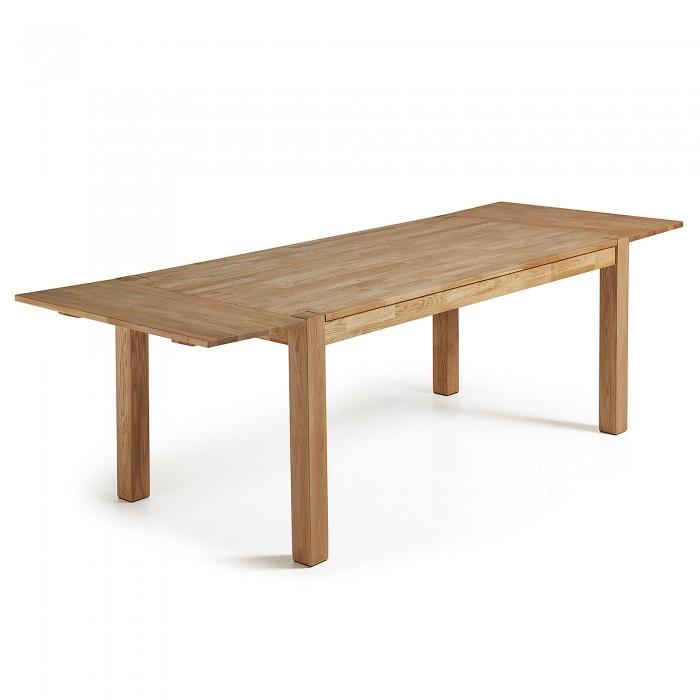 Mesa extensible con pies y sobre en madera de roble macizo con acabado natural. Longitud máxima 200 cm.