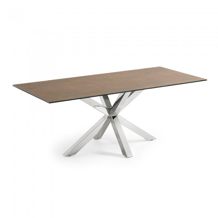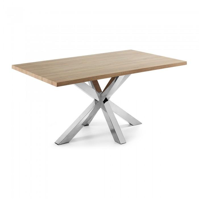 La madera un material tan robusto como elegante. En esta mesa se alían a la perfección: el primero para sus pies, el segundo para un gran sobre en madera que le confiere mucha personalidad y elegancia.