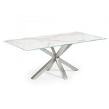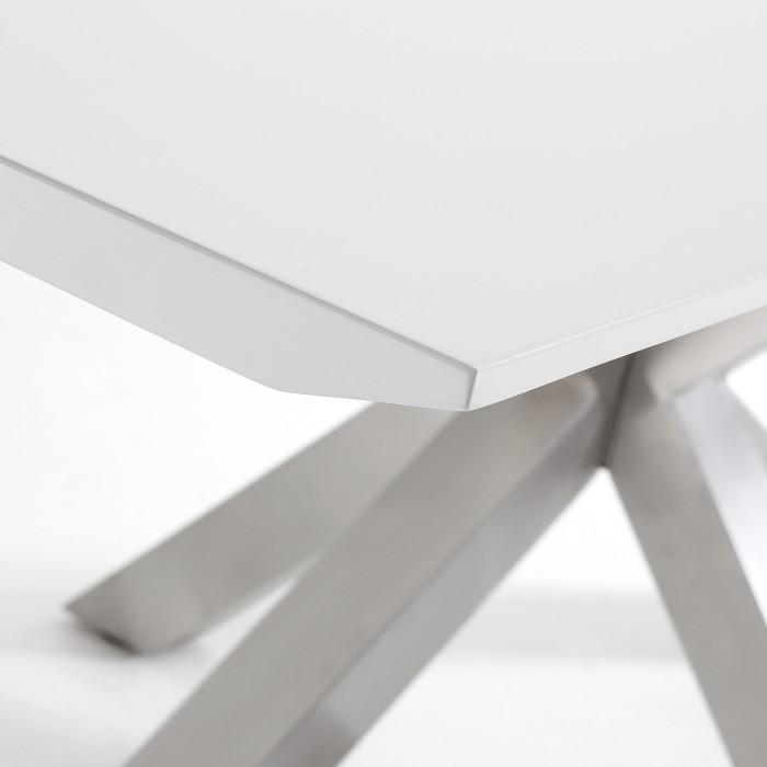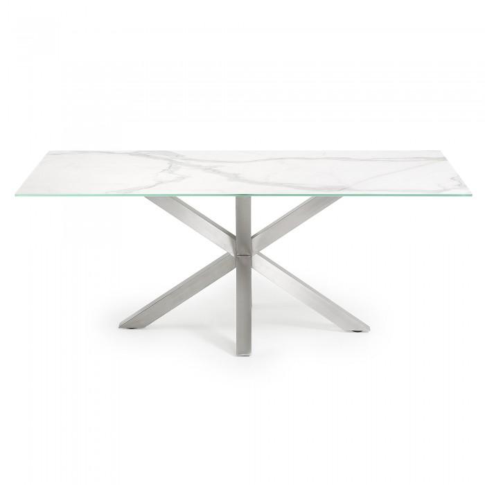 Acero y cerámico, dos materiales tan robustos como elegantes. En esta mesa se alían a la perfección: el primero para sus pies, el segundo para un gran sobre que le confiere mucha personalidad y elegancia.os, cristal, sobres lacados… Seguro que encontrarás el material que mejor encaja en tu hogar y se adapta a tu ritmo de vida.