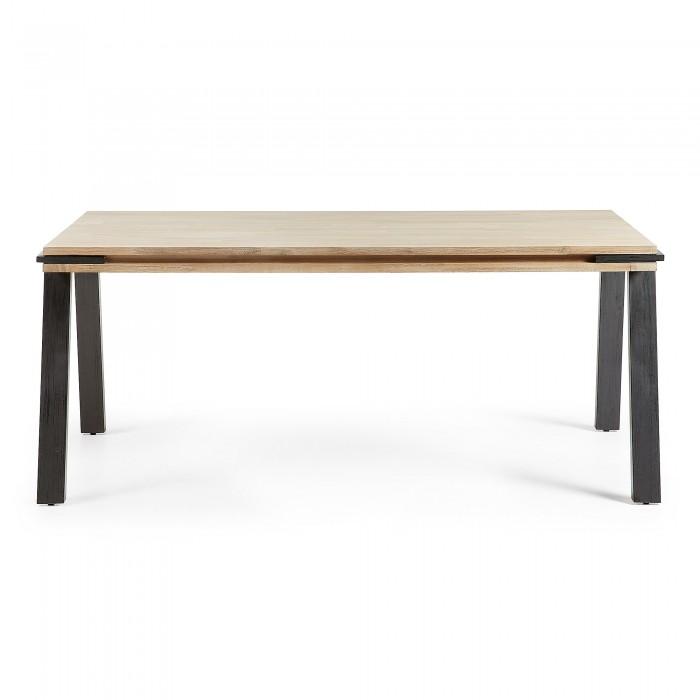 Mesa con sobre de madera de acacia maciza en acabado natural blanqueado. Pies en metal pintado envejecido.