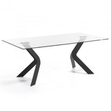 Mesa con pies de acero pintados en epoxy. Sobre en cristal templado.