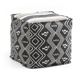 Puf en combinación de telas de jacquard. Desenfundable. Relleno de poliestireno expandido incluido.