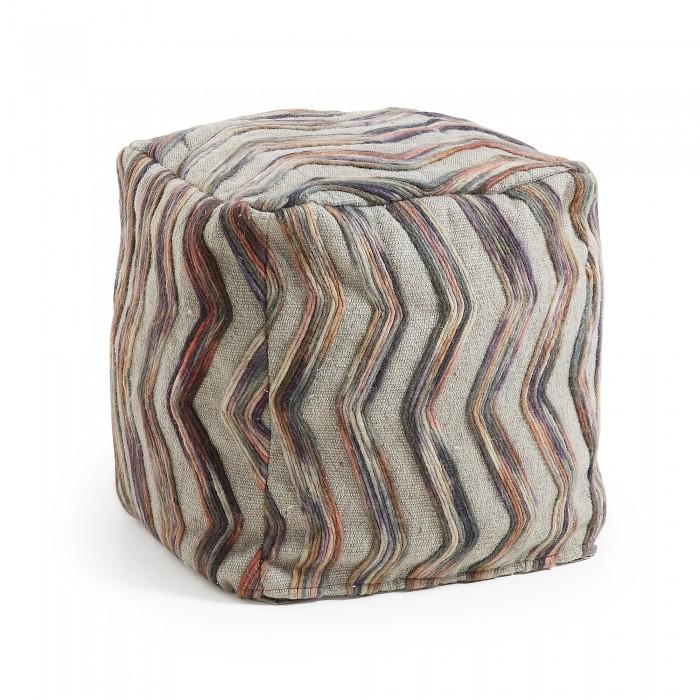 Puf en tejido con bordado de lana. Desenfundable. Relleno de poliestireno expandido.