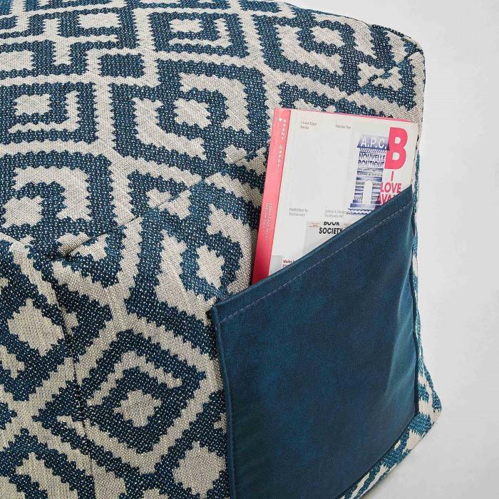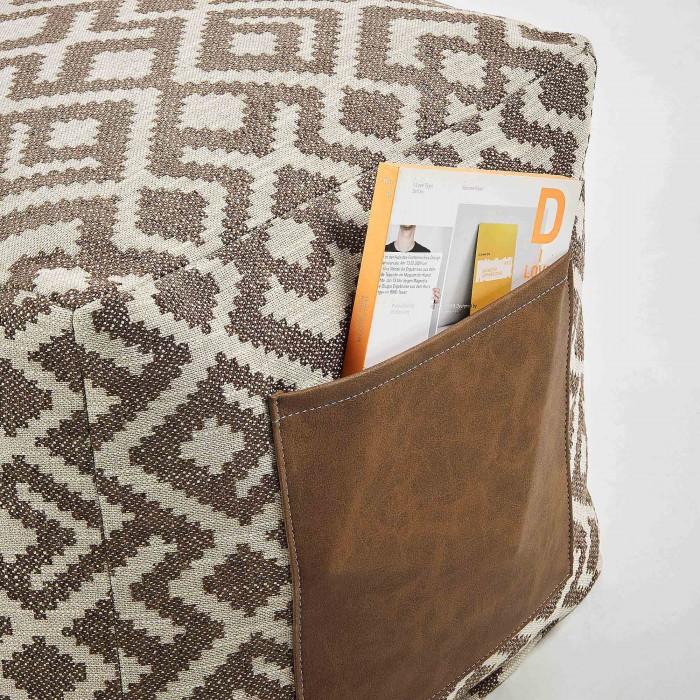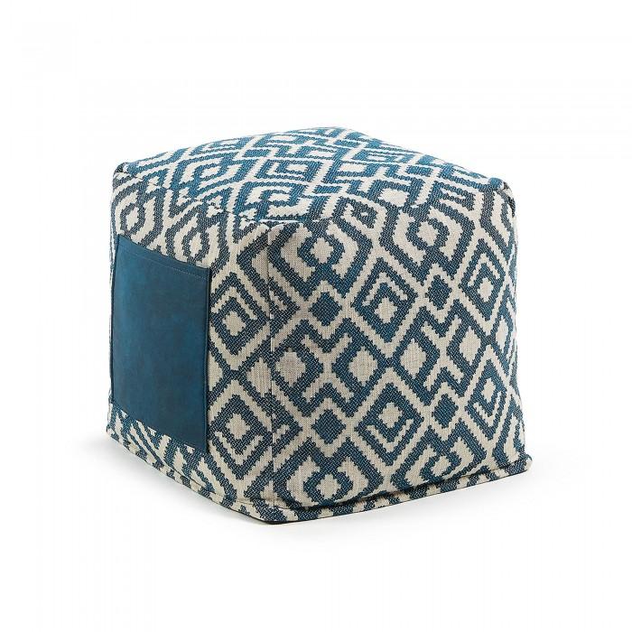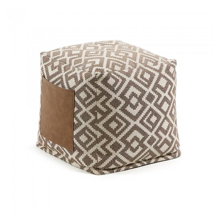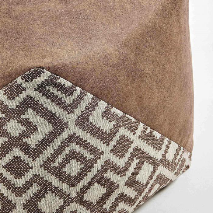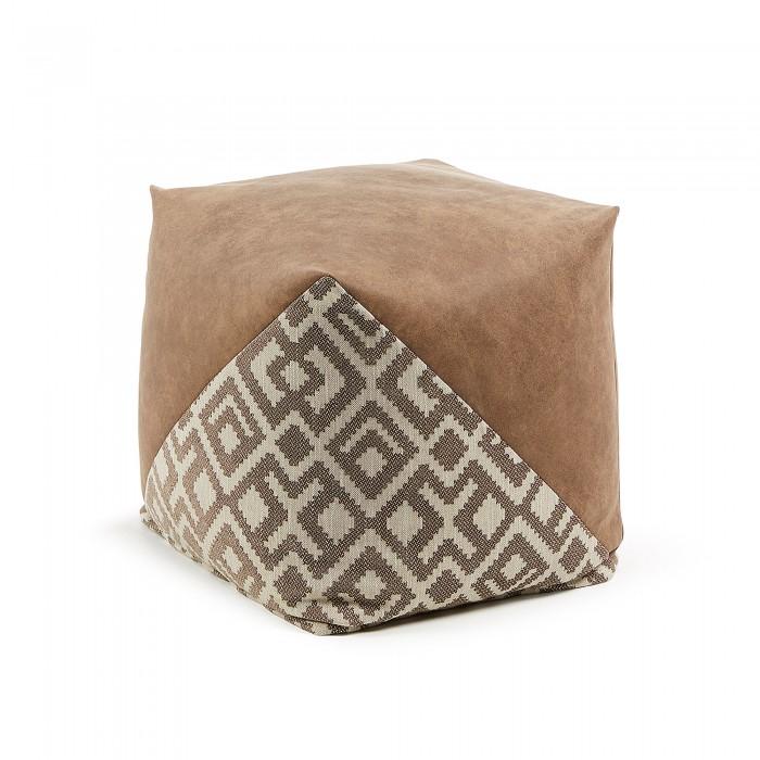 Puf en combinación de telas. Desenfundable. Relleno de poliestireno expandido incluido.