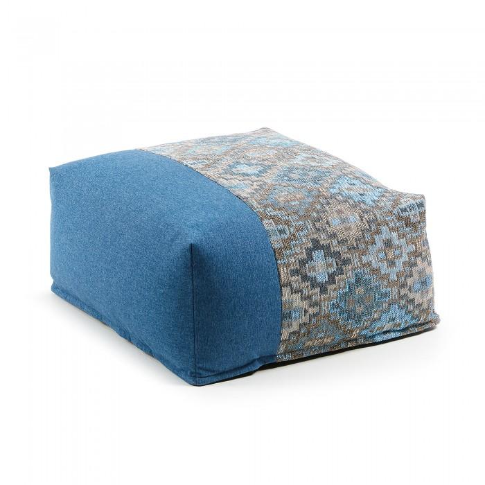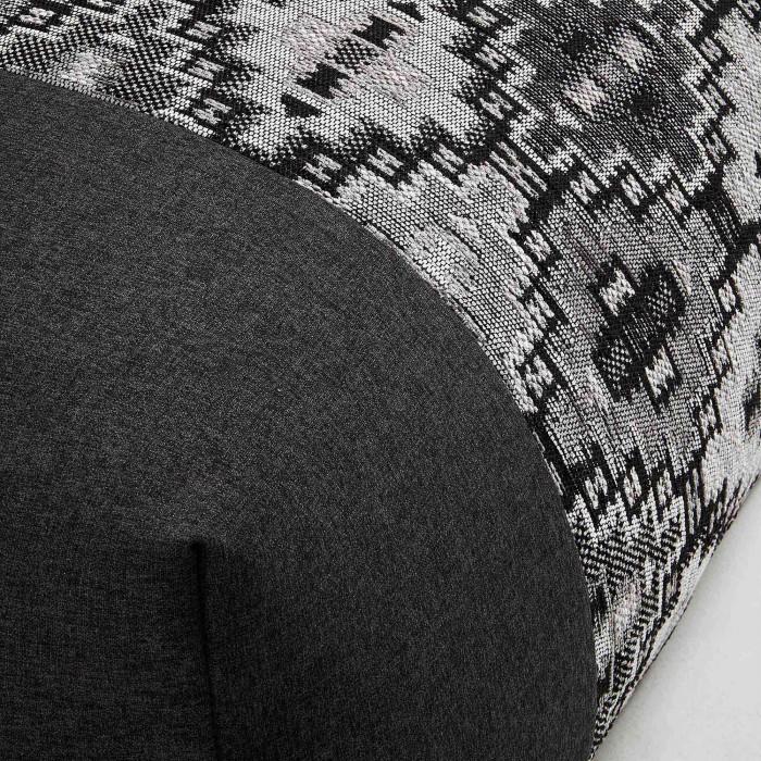Puf en combinación de telas. Desenfundable. Relleno de poliestireno expandido incluido.