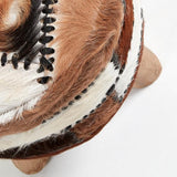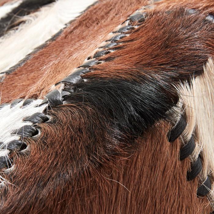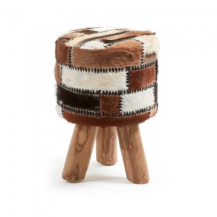 Reposapiés en patchwork de piel de cabra. Pies de madera de teca.