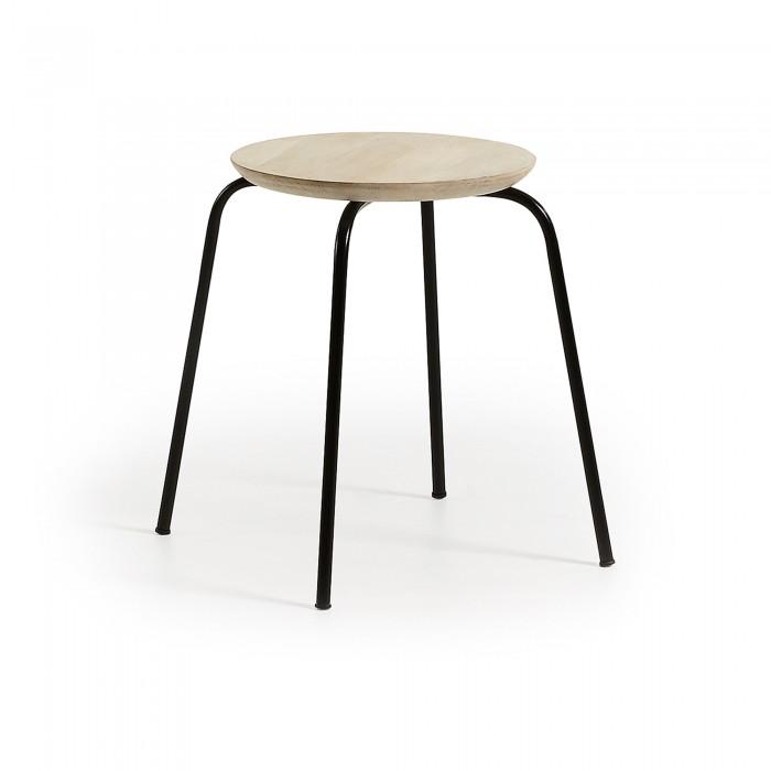 Reposapiés con estructura de metal y asiento en madera de mango macizo natural.