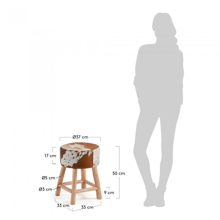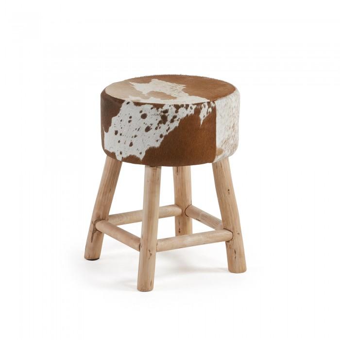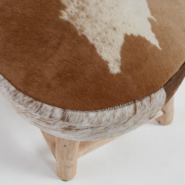 Reposapiés con pies de madera de acacia maciza y asiento en piel de vaca.