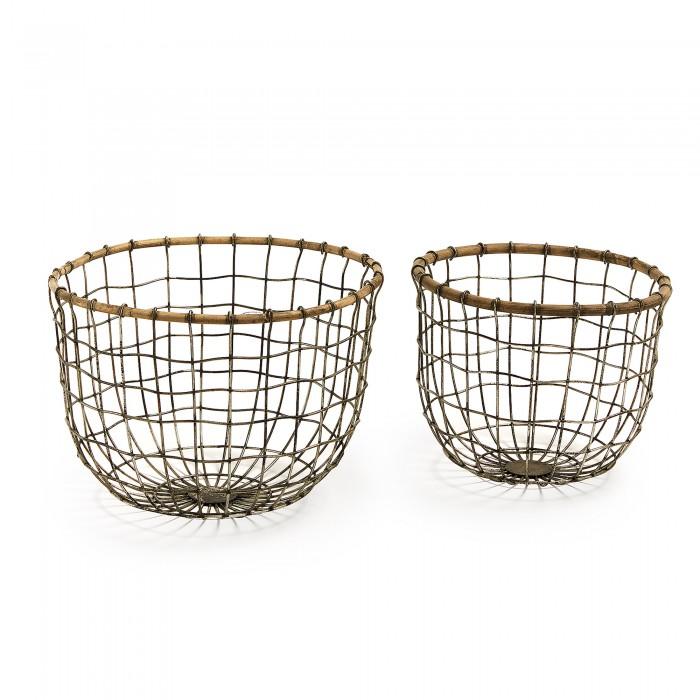 El diseño de estas dos cestas se centra en el uso de varillas metálicas, un detalle que crea ligereza visual y ayuda a decorar ambientes en los que la amplitud es un bien escaso. Además, metal y madera, la combinación de tendencia, se hace evidente gracias al uso de un aro de madera en su acabado. Sin duda, un set tan práctico como bonito con casi tantas utilidades como imaginación tengas: como revistero, para poner cojines y plaids cerca del sofá... ¡Las posibilidades son infinitas!