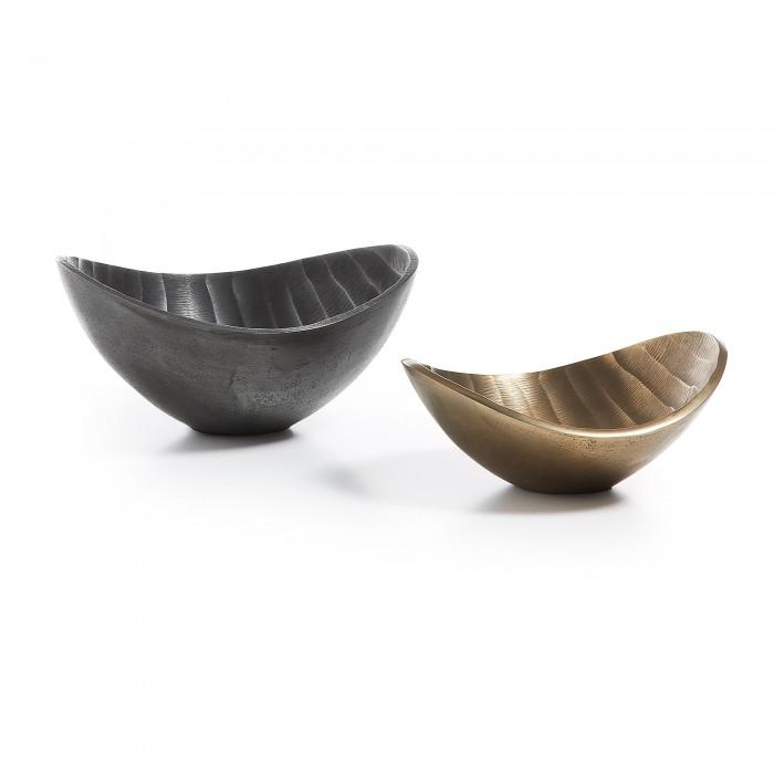 Set de 2 cuencos de aluminio en acabado oro mate y grafito.