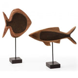 Set de 2 peces decorativos de madera, acabados en combinación natural y marrón envejecido.