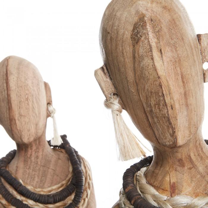 Set de 2 figuras bustos étnicos en madera natural efecto envejecido.