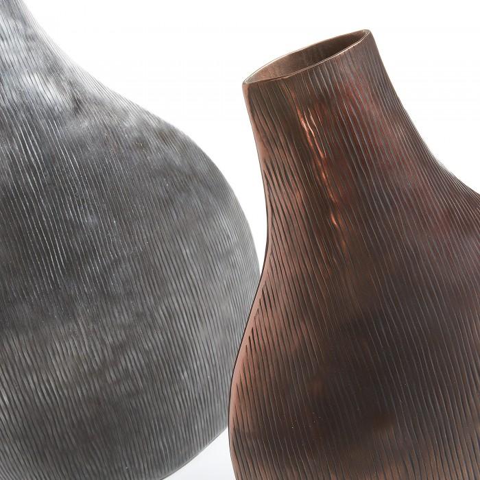 Set de 2 jarrones de aluminio en acabado cobre y grafito.