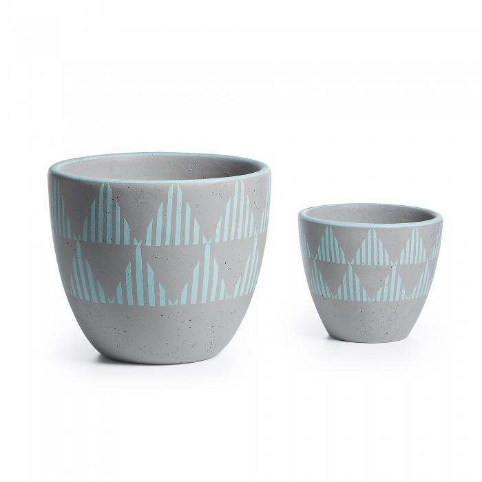 Set de 2 maceteros de cerámica con dibujos geométricos.