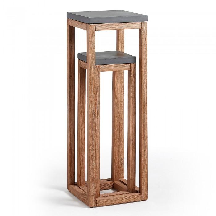 Estas columunas o pedestales, están elaboradas en madera de acacia y cemento. Una combinación de materiales que otorga un toque de actualidad a su elegante diseño.